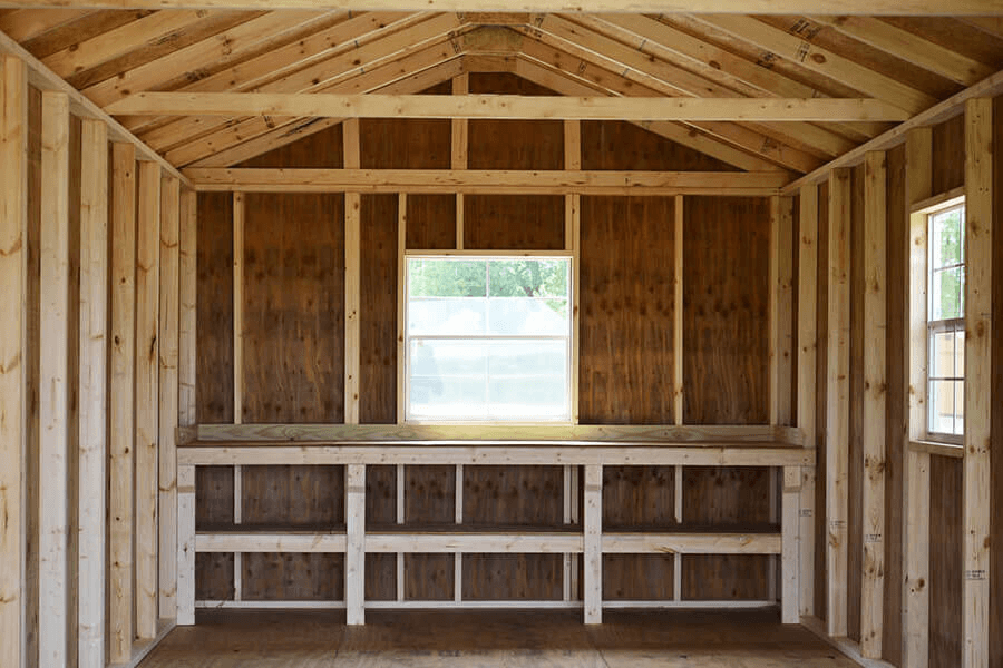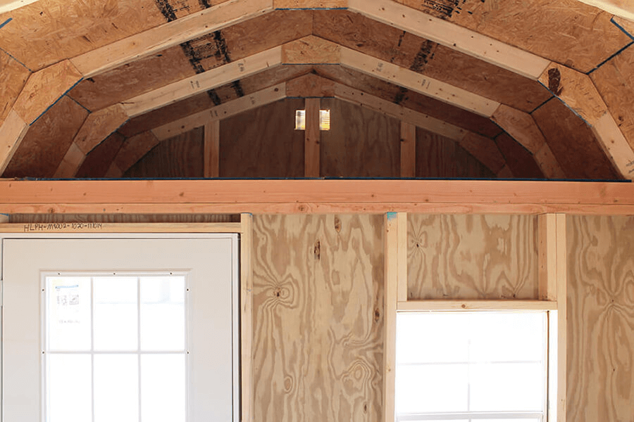 Lofted Barn style has up to 12ft of Loft depending on length, giving you that extra space for seasonal storage, empty boxes, things that you do not need right away or just stuff that needs to be off the floor.